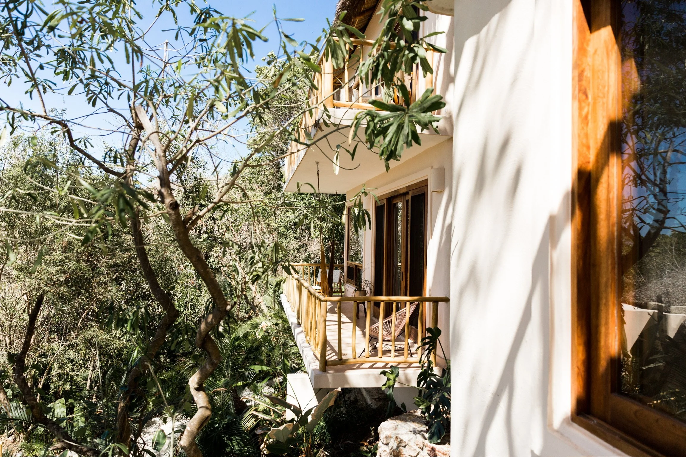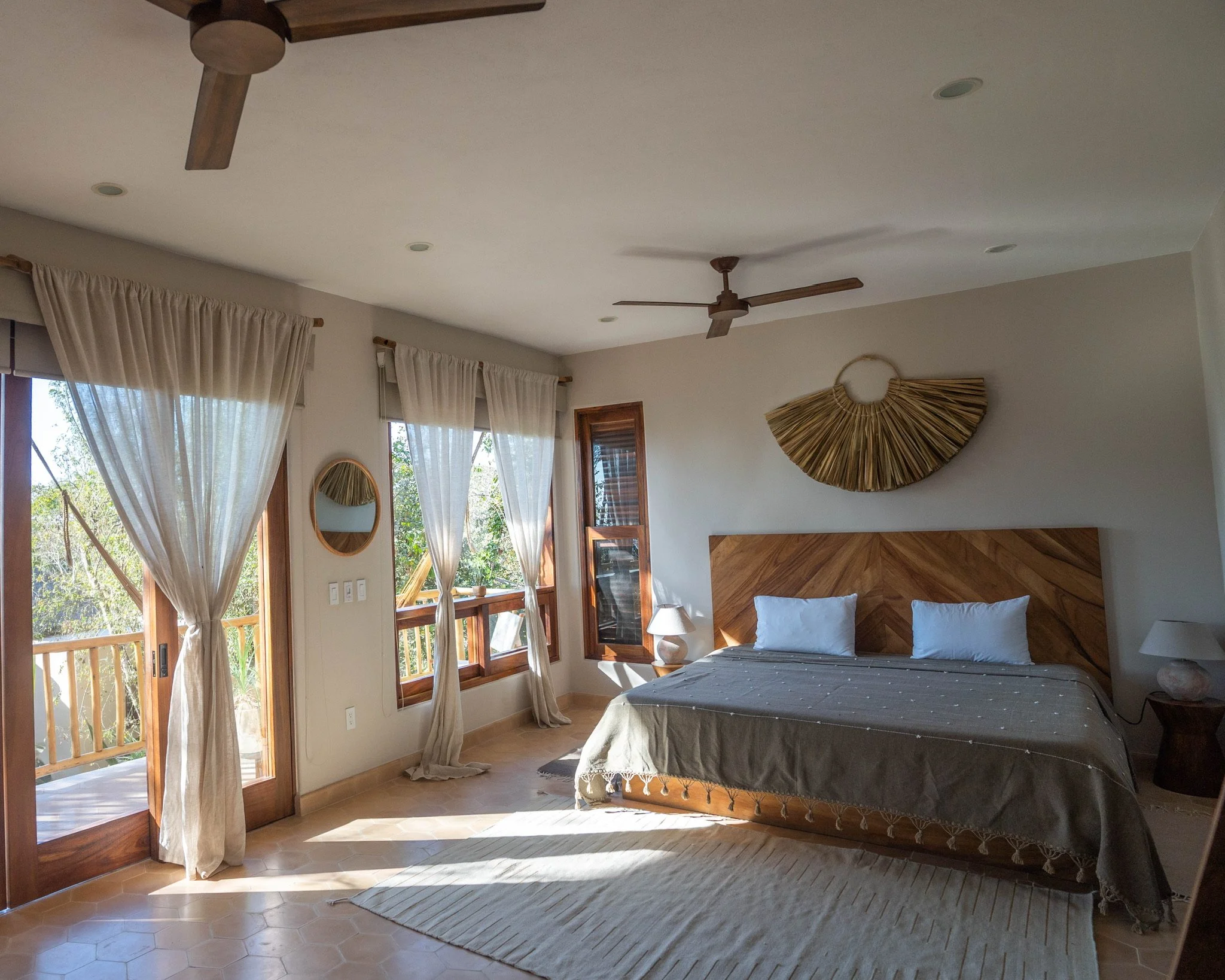The Casa is a 3 bedroom home overlooking lush jungle and the Pacific Ocean. This two floor home offers a living room with walk out terrace, a well equipped kitchen, 3 bedrooms each with a king size bed, walk out terraces and on-suite bathrooms. Includes AC, Ionized filtered water, Vitamix, Smart TV, Yoga Mats, Black out Blinds, Laundry