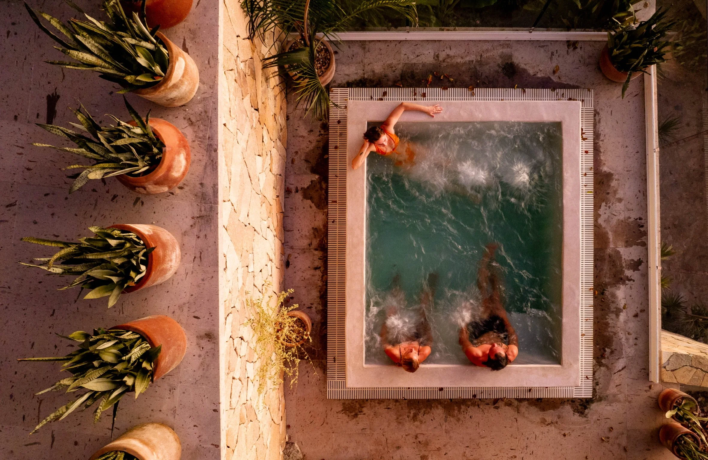 Sunrise Pilates, breakfast, open time for beach, pool, sauna, cold plunge, divine laziness, optional add-ons, lunch out on town sunset yoga, dinner, self-care of choice